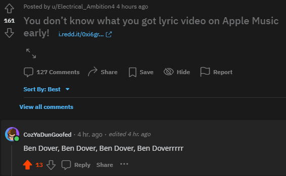 NotNow Posted September 21, 2023 Posted September 21, 2023 1 hour ago, Ghent Lvl 10 said: Yeah this is a completely different feeling for me. With Edging, if it sucked, I was ready to just fall back on Tom bashing since he has been a complete ass since the early 2000s really. But he has started to rope me back in lately. The alien stuff is dumb, but it’s not a deal breaker if he’s not scamming and acting like a freak. I’m really excited for tomorrow. I’ve reached Level 10, I don’t care that it’s a slow song. I’m even embracing that part of it. I am fully edged and ready. Let’s be honest he is scamming still but minimal scamming that is obviously scamming so anyone that gets scammed is an idiot like the ava bots I’ll just pretend like it isn’t a thing if this music is great. 1